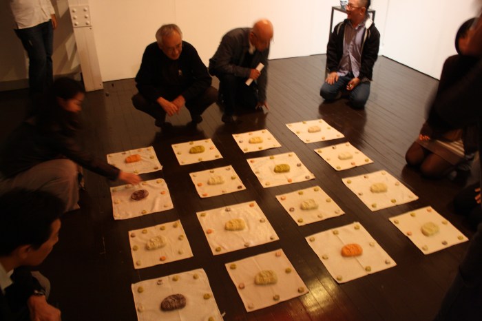 The third piece is an edible installation connecting Hasami, Japanese tradition of flower viewing, with the structure of Mexican markets as meeting point among cultures, one where the normative order is thrown out of balance. This edible portion is based on Casta paintings, 18th century portraits from Mexico that represent images of mixed race families, transformed into mixed-flavor Japanese traditional rice cakes.