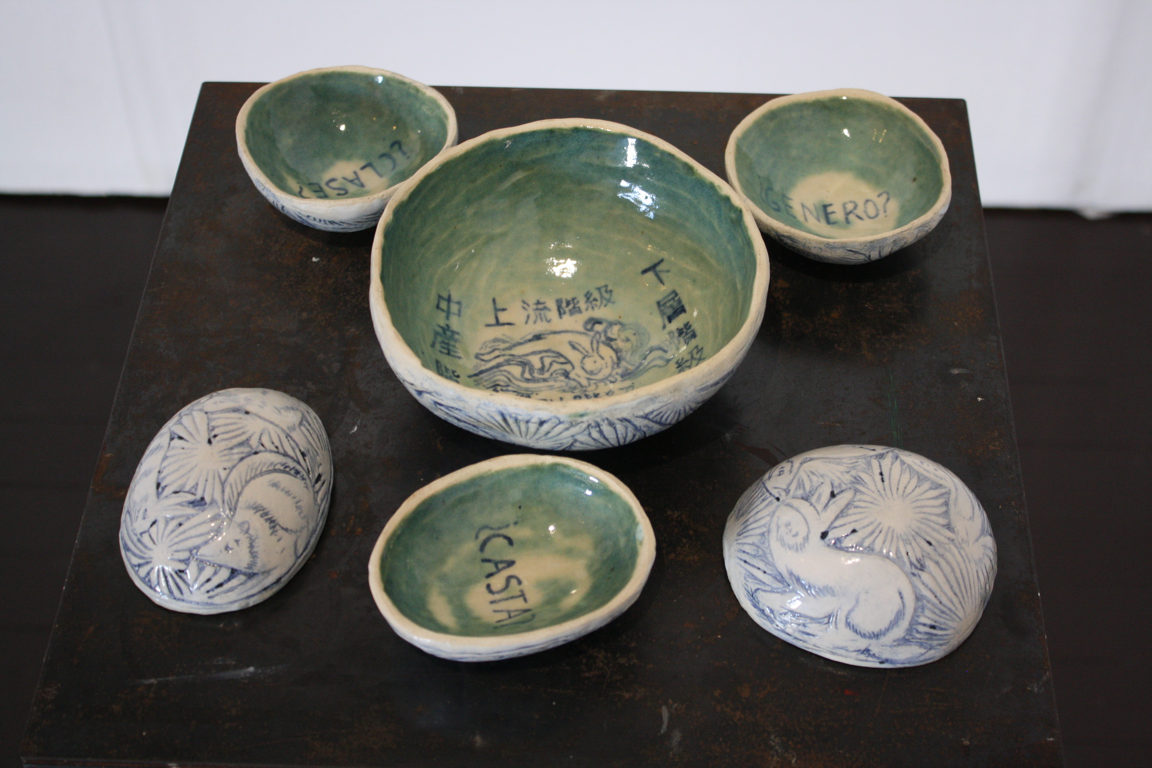 The third piece is an edible installation connecting Hasami, Japanese tradition of flower viewing, with the structure of Mexican markets as meeting point among cultures, one where the normative order is thrown out of balance. This edible portion is based on Casta paintings, 18th century portraits from Mexico that represent images of mixed race families, transformed into mixed-flavor Japanese traditional rice cakes.
