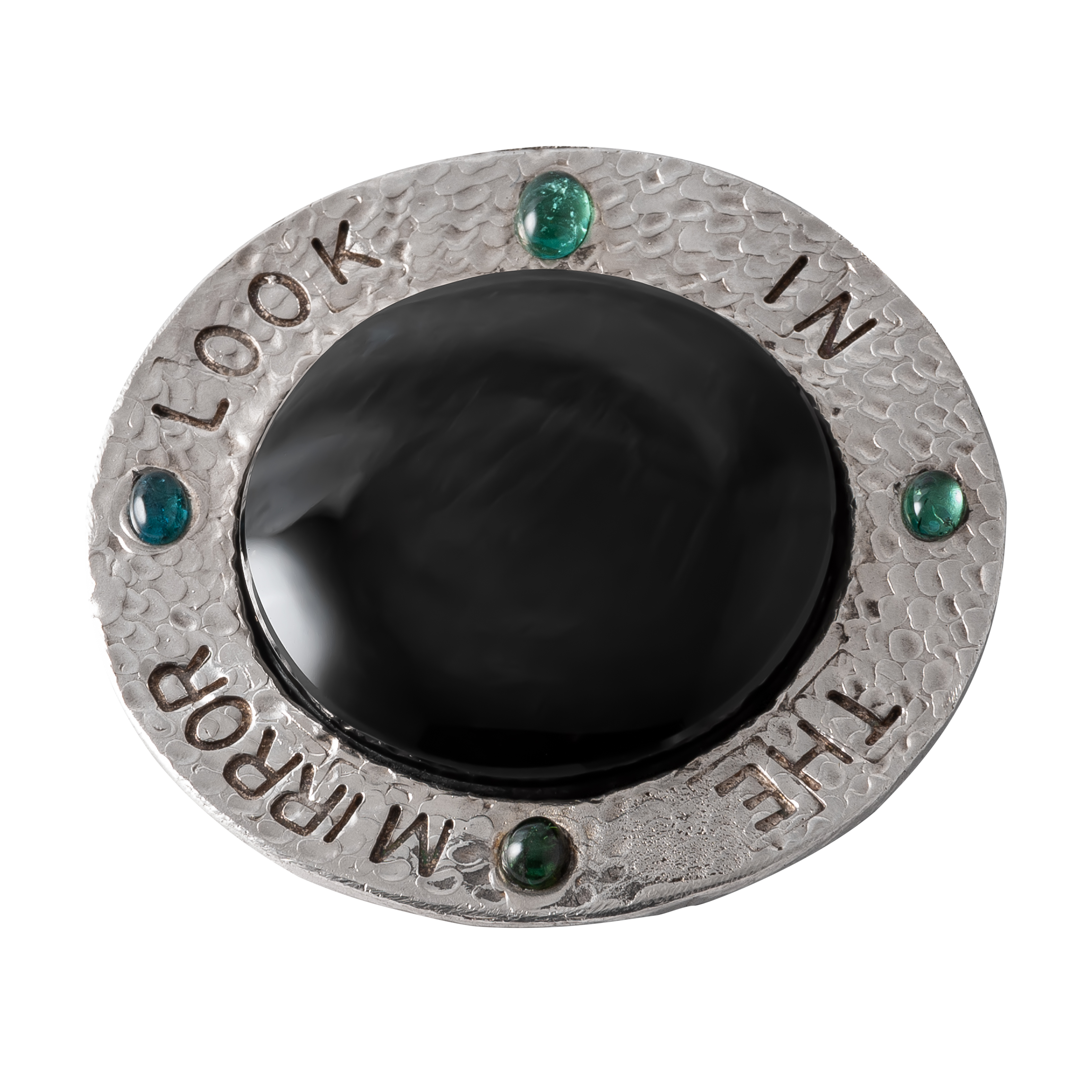 “Looking In the Mirror” is a series of obsidian mirrors encrusted with precious gemstones and woods, exploring different manifestations of “Empire” as a superstitious fantasy of destruction and extermination. Thinking about the black mirror as an “inversive” medium and inspired both by the obsidian mirrors from the British Museum, and the descriptions from the codexes Yanhuitlan and Kingsborough, this series link Cartesian philosophy to the practices of knowledge destruction and looting, to produce divine imperial illusions. From the so-called “conquest” of the Americas, to the birth and expansion of the British Empire, including the ransacking practices of the Grand Tour, the creation of museums, and even fairy tales, black mirrors have been present as a technology throughout the history of power.