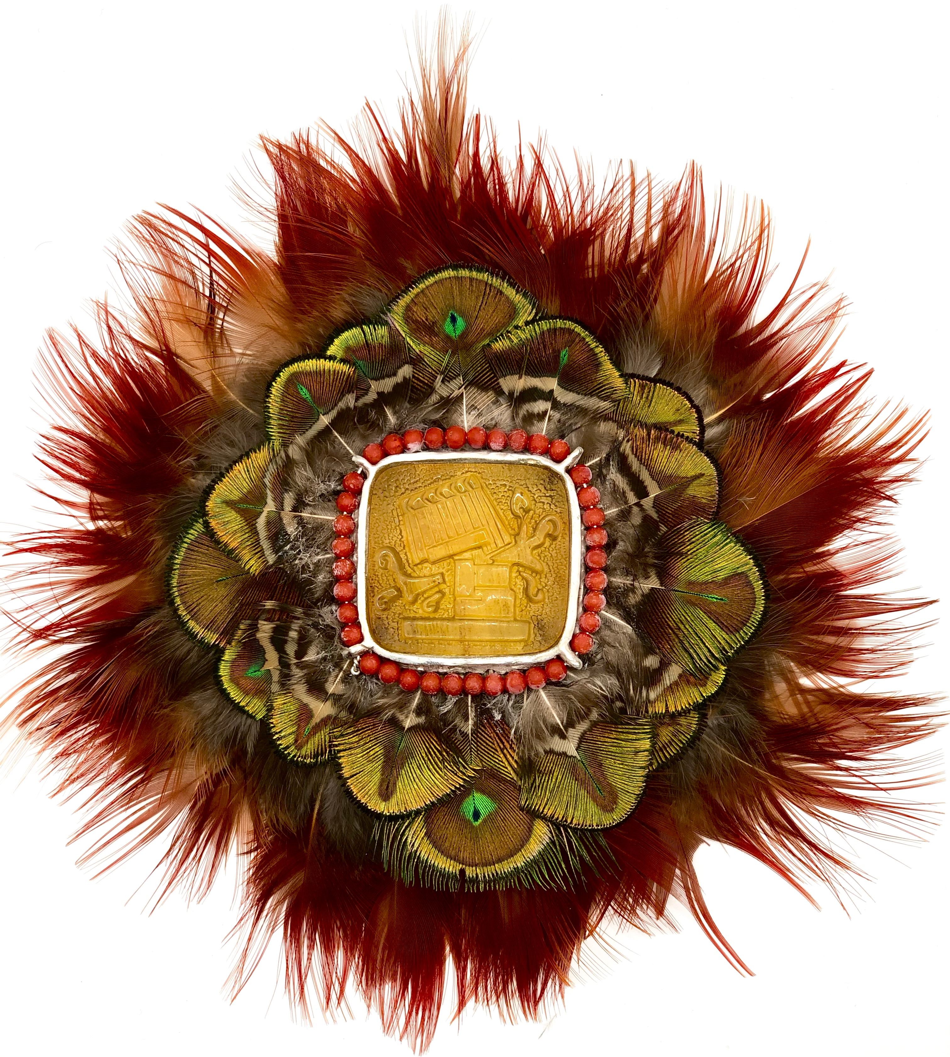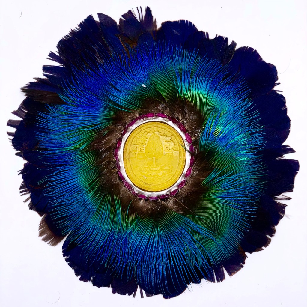 From the lost Aztec gold of Moctezuma, the kingdom of “El Dorado”, and the gold and silver from the Spanish galleon Esperanza, to the riches of corsairs such as Amaro Pargo, Francis Drake, and many more from the Golden Age of Piracy, the epic myths of treasures are tied to “Empire” and its history, thus remaining in the collective imaginary as revered and desired possessions. This new series explores the intersection of the processes of extermination and Mesoamerican complex thought, through precious feather art works.
