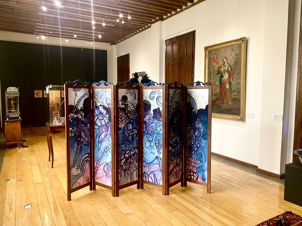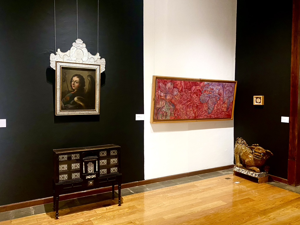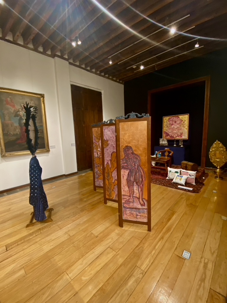 De lo Bello a lo Invisible propone una mirada crítica sobre lo que ha sido sistemáticamente invisibilizado: lo que no encaja en los cánones hegemónicos de representación. A través del color, la materia y la forma, la muestra restituye dignidad a otras formas de presencia, desplazando el foco hacia sensibilidades históricamente marginadas. El recorrido culmina en un estrado ceremonial, inspirado en los espacios domésticos novohispanos donde se celebraban los saberes femeninos y el arte del convivio. Este estrado —erigido como un altar horizontal— reúne una constelación de objetos votivos, textiles rituales y artefactos sensoriales, proponiendo un espacio de contemplación activa. No es un punto final, sino una plataforma simbólica desde donde imaginar nuevas formas de ver, sentir y habitar el mundo. Más que una revisión del pasado, esta exposición es una invitación a volver a mirar: a hacer visible lo que ha permanecido oculto, y a reconocer en el acto de ver una forma de justicia.