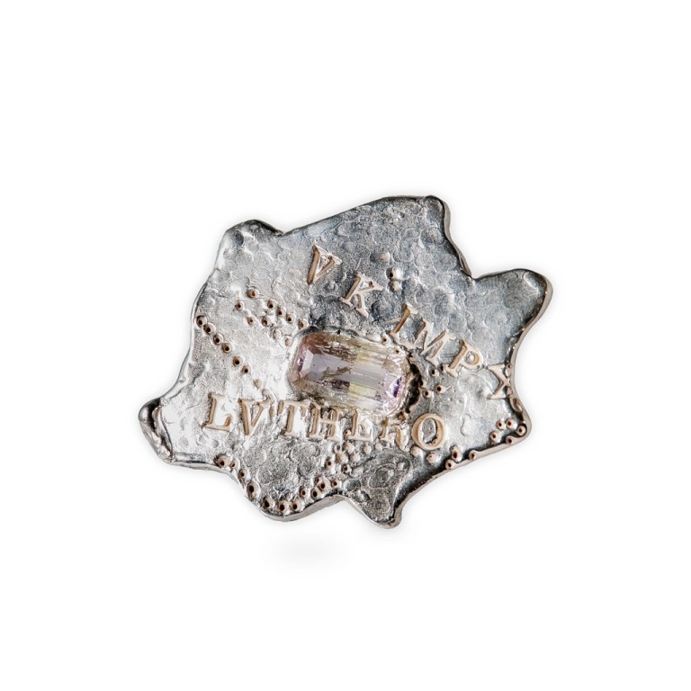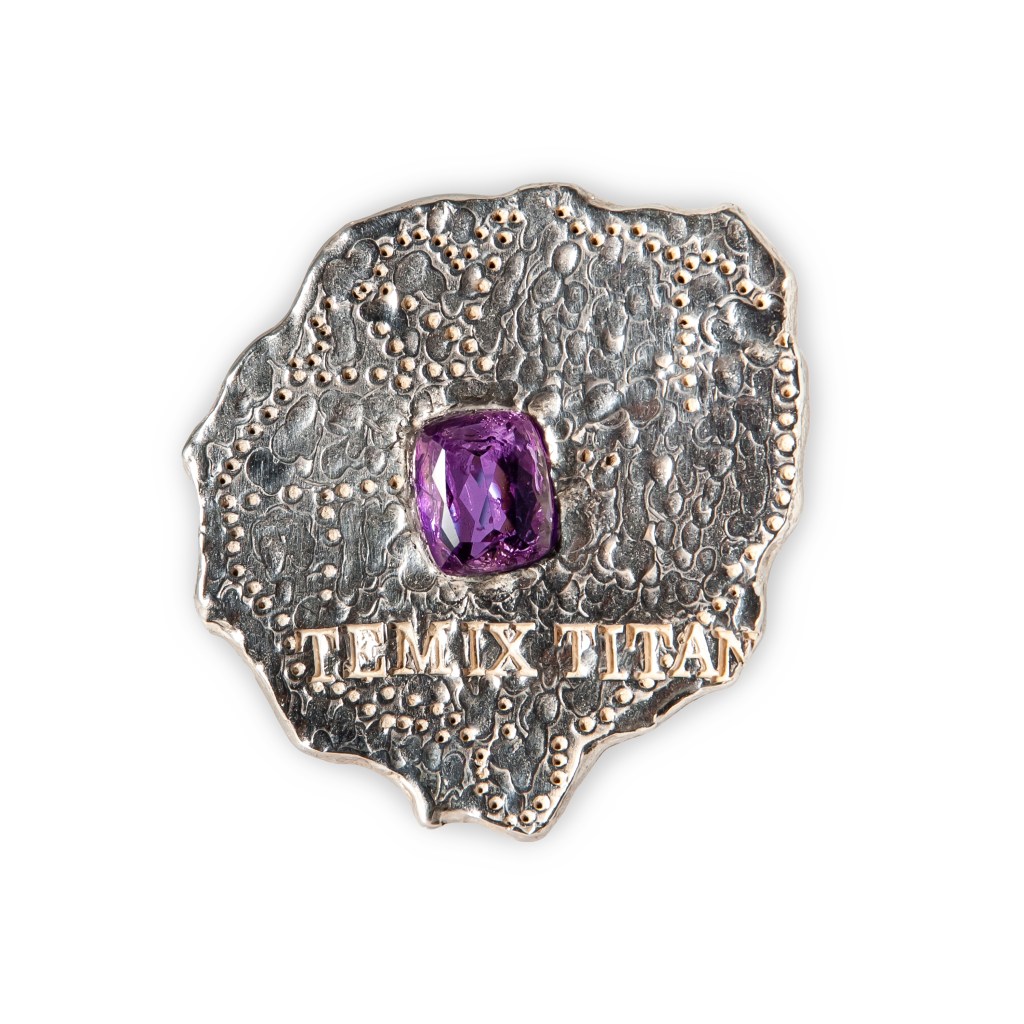 “1521” Amethyst and cast sterling silver ring. 6 x 6 x 4 cm. 2023