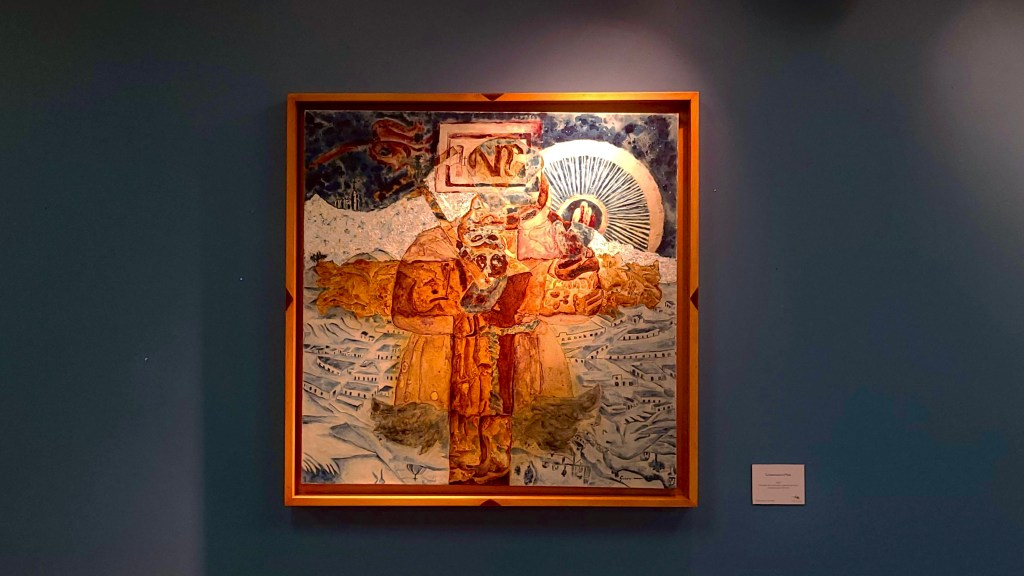 Their juxtaposition, as articulated by many of the works in this exhibition, denotes the violence inherent in transforming Indigenous forms of understanding the world into new and unrecognizable ones. Guevara aims not only to capture this process of violent transformation through the meaning of each material he employs, but also to reveal how its principal imperial interlocutors—those historical figures at the center of these transformations—were far less innocent than we imagine.